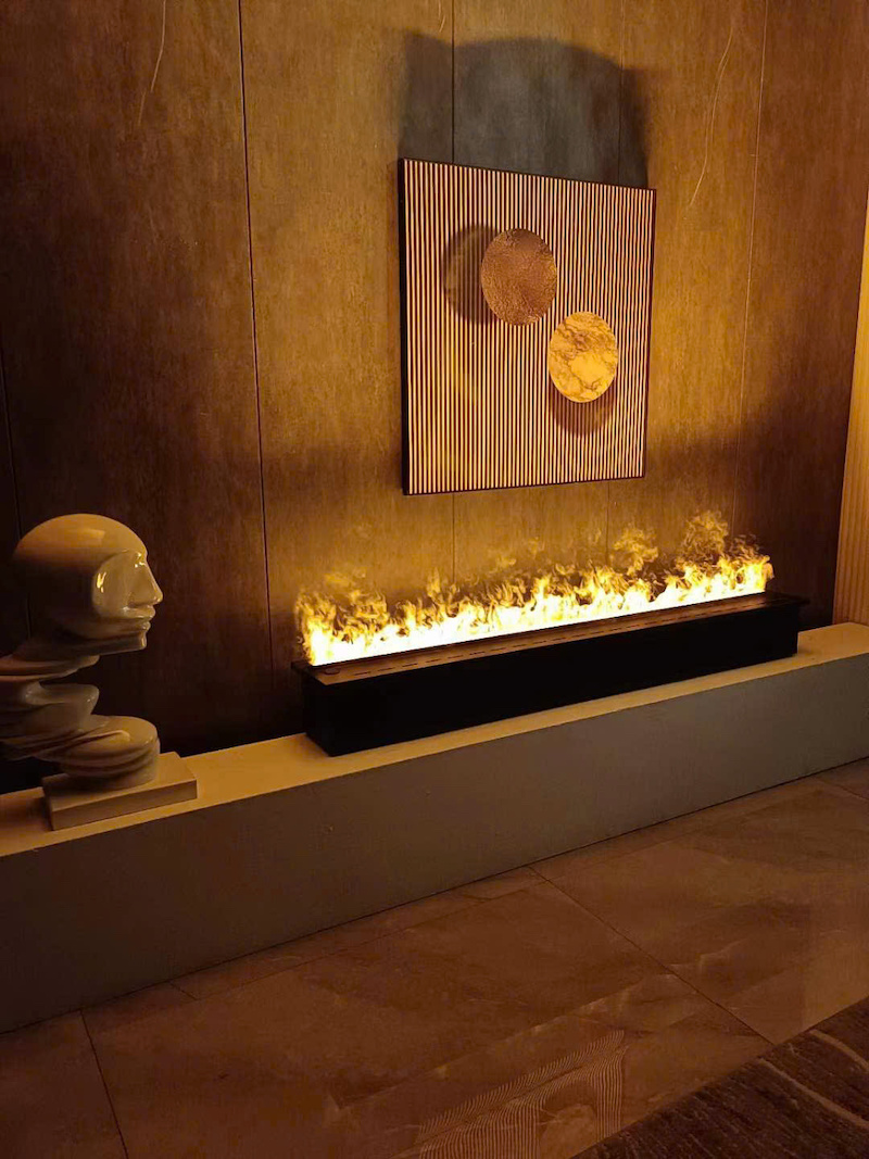 Sự kết hợp giữa thị giác và thính giác được đẩy lên cao trào nhờ hệ thống Bluetooth XC 048 tích hợp sẵn bên trong thân máy. Quý khách có thể vừa chiêm ngưỡng những dải lụa lửa mềm mại, vừa tận hưởng những bản nhạc Jazz thư thái từ chính thiết bị này. Khác với dòng 3D vốn không sử dụng nước và thiếu các kết nối thông minh, dòng 4D tạo ra một hệ sinh thái tiện nghi toàn diện. Sự tinh tế trong việc ứng dụng công nghệ đã đưa giải pháp trang trí này trở thành tâm điểm của mọi ánh nhìn khi bước vào sảnh chính của căn hộ.